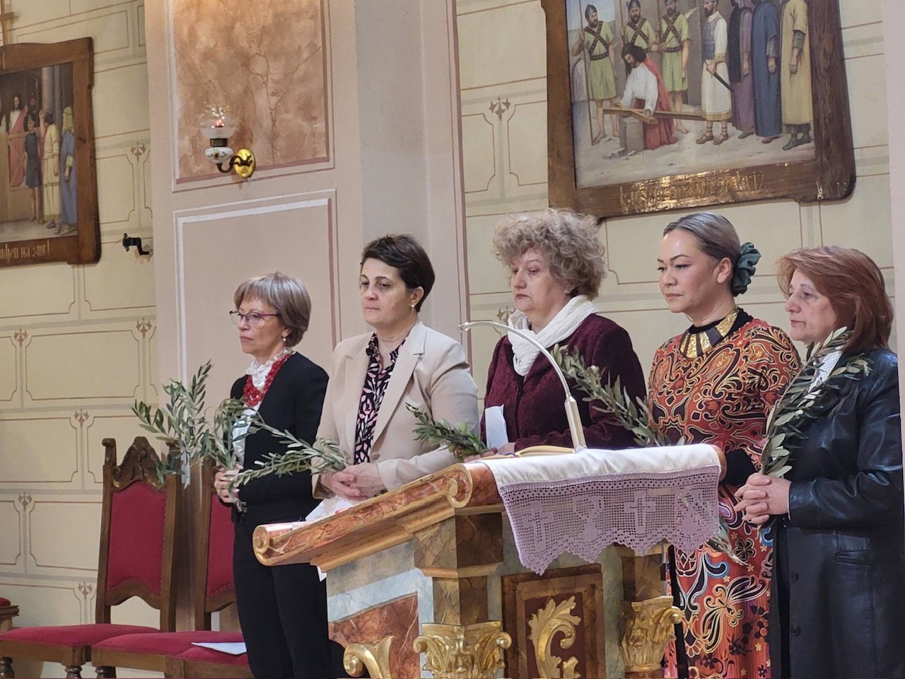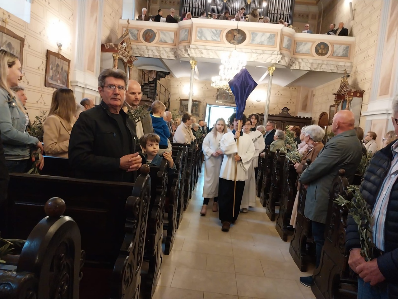 Na misi u 9 h imali smo blagoslov grančica u dvorištu i svečani ophod u crkvu. Veliki zbor je pjevao muku i tako uzveličao slavlje blagdana.