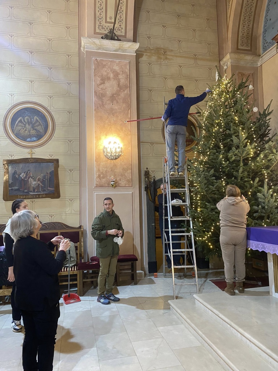 Župni suradnici uredili su našu crkvu za proslavu Božića sa borovima i nakitom.