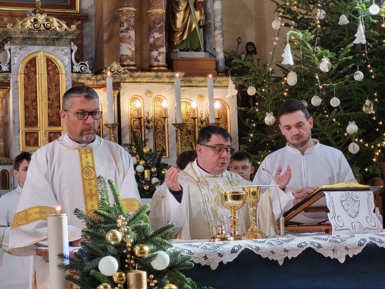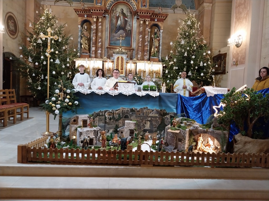 Nedjelju i blagdan Svete Obitelji proslavili smo svetim misama u 9, 11 i 18 h. Na misi u 9 h zahvalili smo Bogu na 50 godina braka naših dragih župljana, Ivana i Terezije Benko. Đakon Miljenko nas je u svojoj nadahnutoj propovijedi potaknuo na promišljanje o važnosti obitelji koja se napose u današnjem liberalnom društvu pokušava staviti na margine, a zapravo je oduvijek bila i treba ostati temelj, kao što je to i Gospodin u svom promislu zamislio. Obitelj je Božji dar čovječanstvu i ona je sveta jer se i sam Bog u njoj rodio. U propovijedi se osvrnuo i na naše današnje slavljenike, koji su poslije popričesne molitve obnovili svoje bračne zavjete.