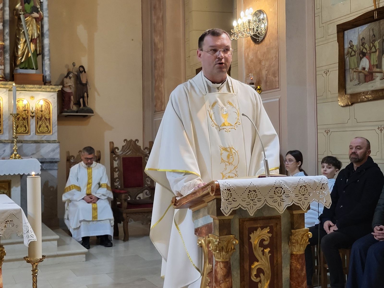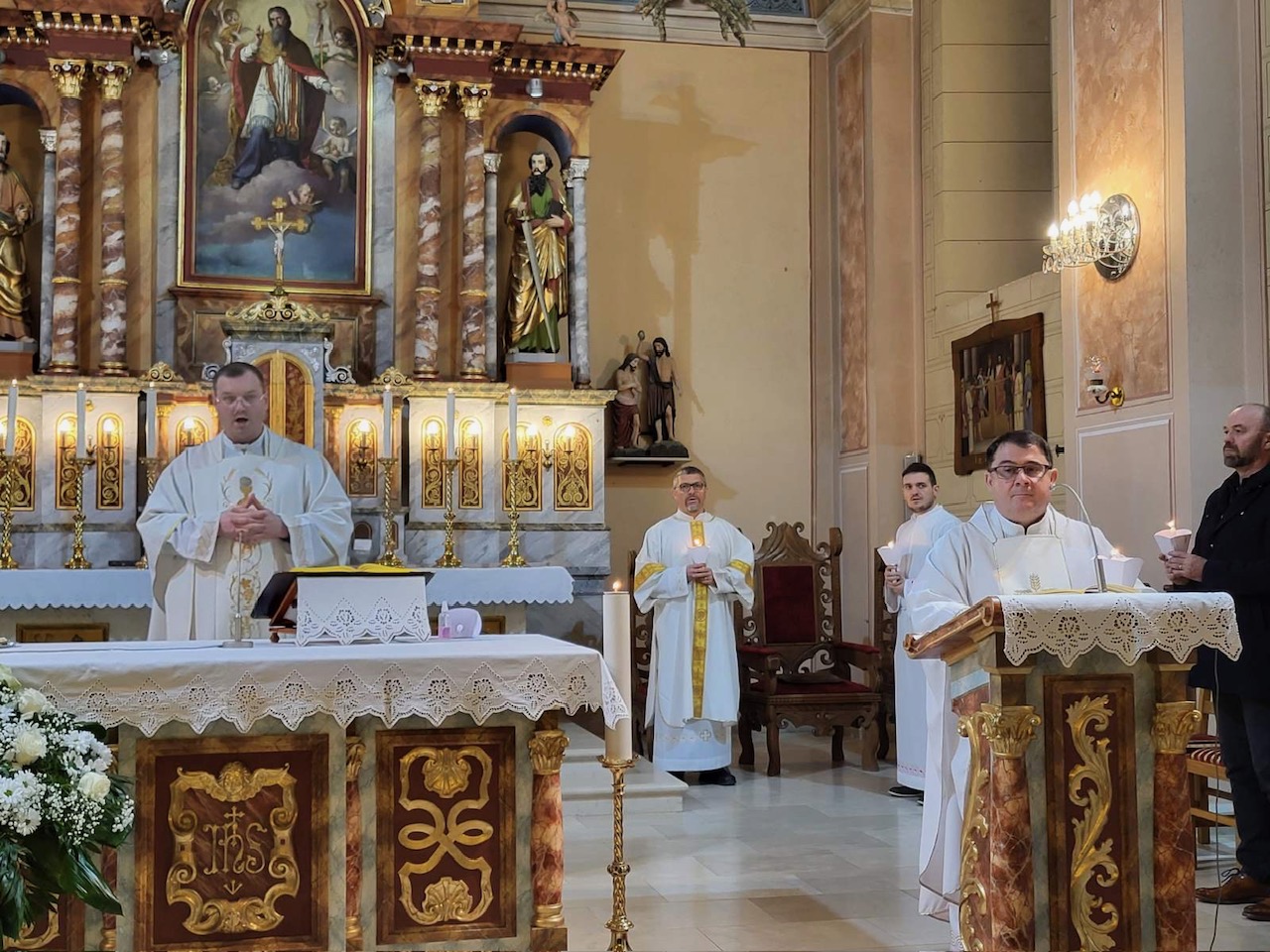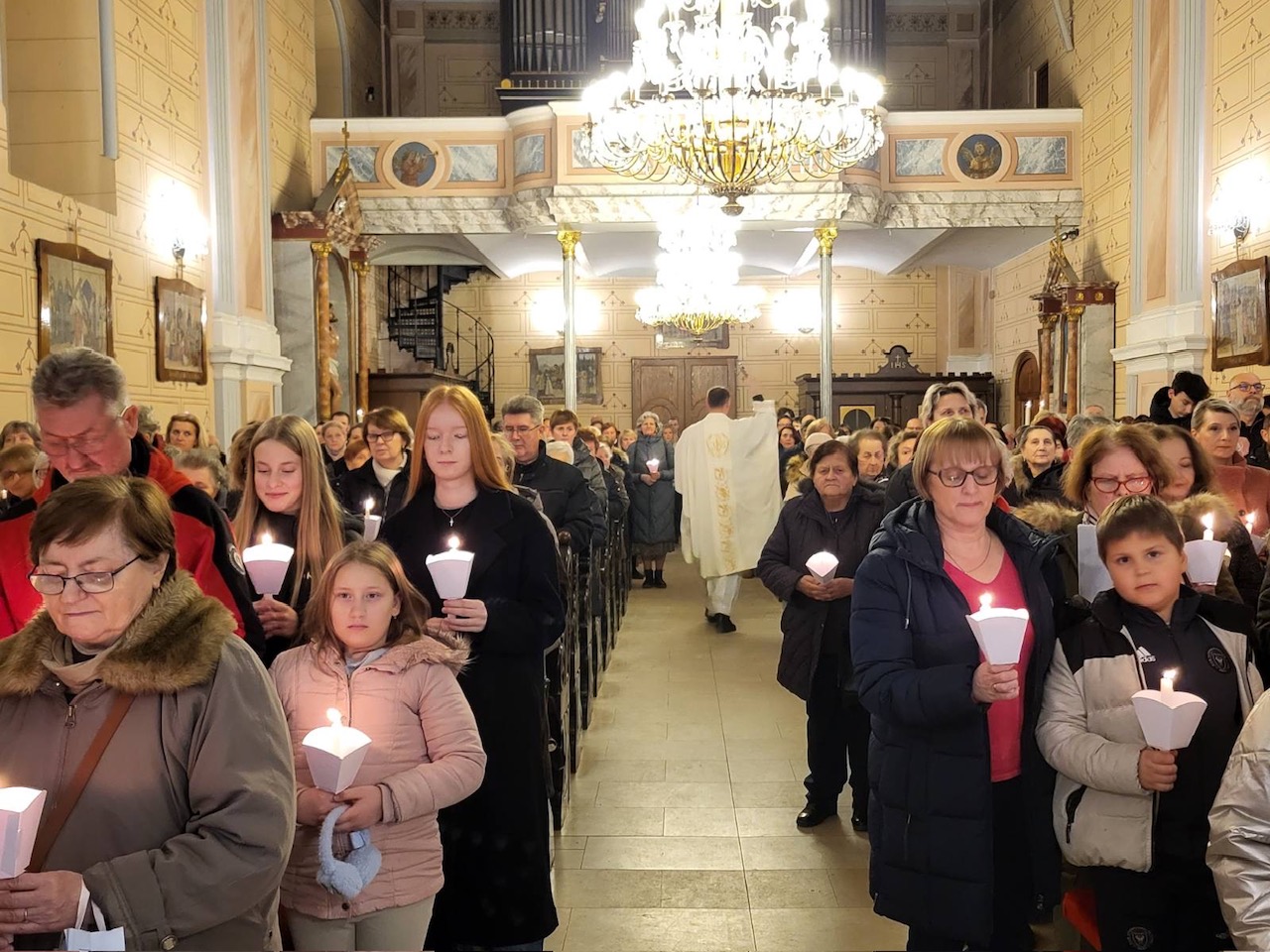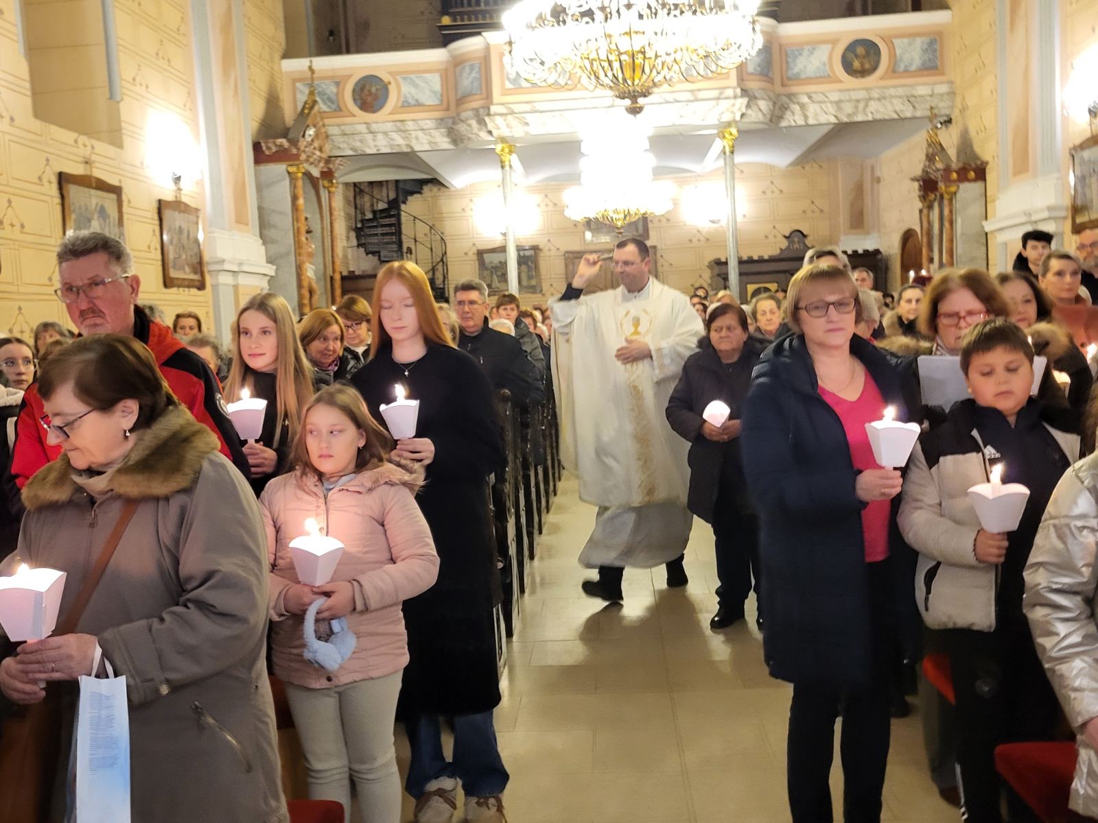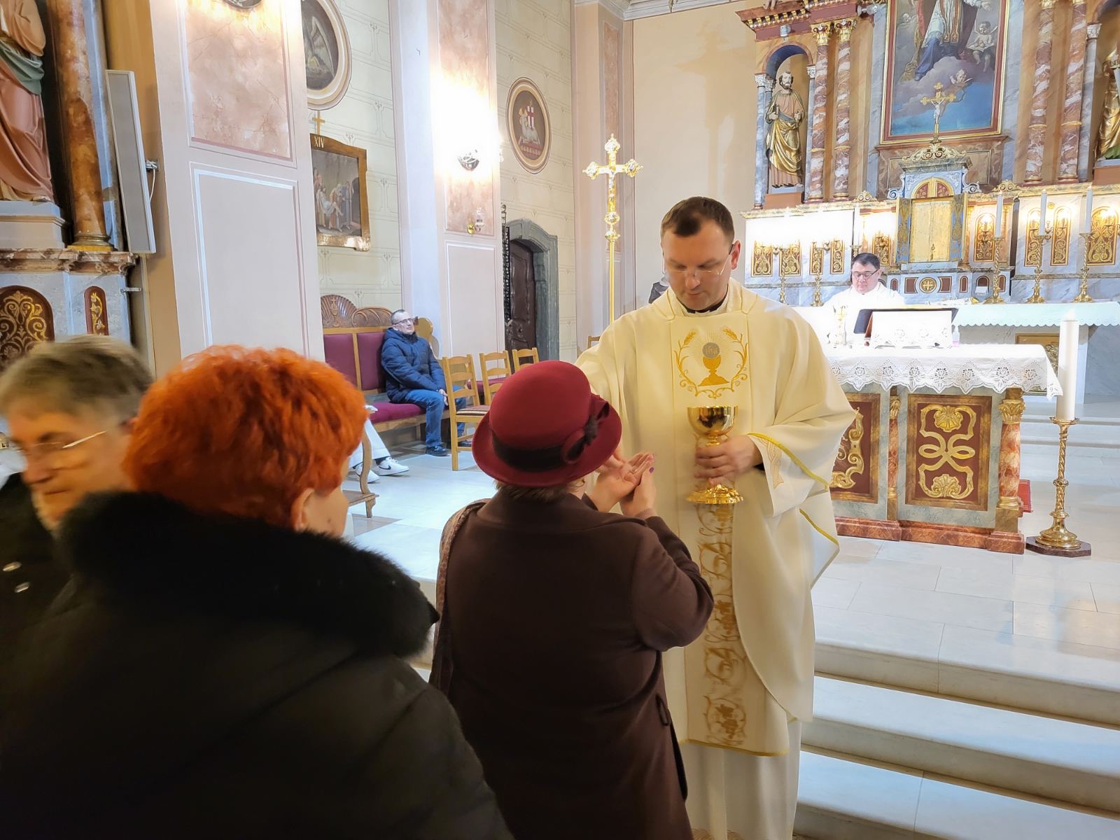 Misu u 18 h predslavio je vlč. Ivan Bingula, profesor glazbe na Katoličkom bogoslovnom fakultetu i duhovni pomoćnik u župi Sv. Barbare Vrapče – Zagreb, u zajedništvu sa župnikom Tomislavom Petrićem. Na misi je đakonirao trajni đakon Miljenko Flajs, a posluživao kandidat za trajni đakonat Ivan Golubić. Velečasni Ivan nas je u svojoj nadahnutoj propovijedi potaknuo da kao vjernici u životu ne težimo za instant rješenjima, već da kao sveti likovi iz evanđelja, starac Šimun i proročica Ana, budemo postojani u molitvi i strpljivi u nošenju životnih križeva jer jedino tako će Gospodin i nama pružiti milost da možemo zajedno sa starcem Šimunom na koncu svoga života uzviknuti: „ Sad otpuštaš slugu svojega, Gospodaru, po riječi svojoj, u miru! Ta vidješe oči moje spasenje tvoje, koje si pripravio pred licem sviju naroda: svjetlost na prosvjetljenje naroda, slavu puka svoga izraelskoga.“