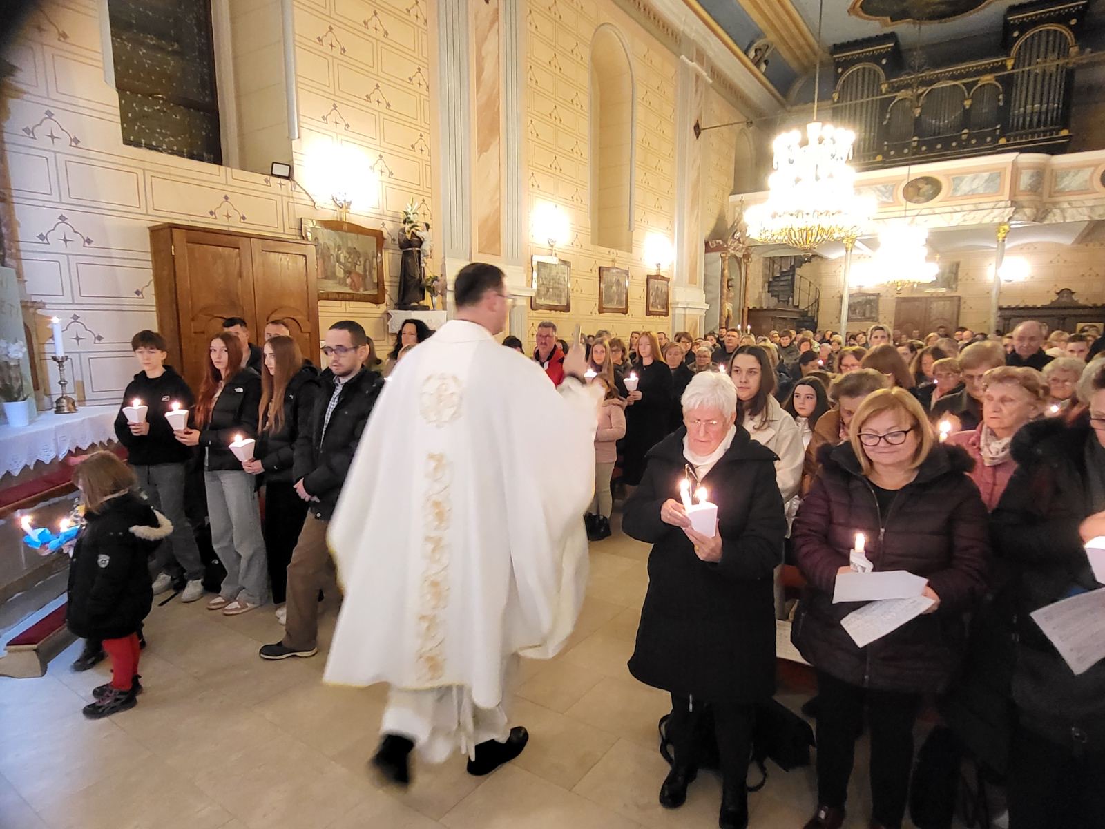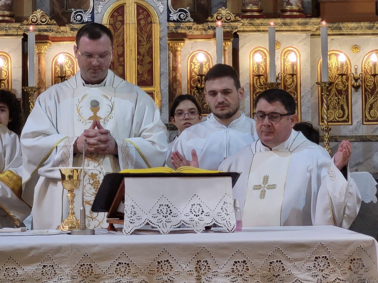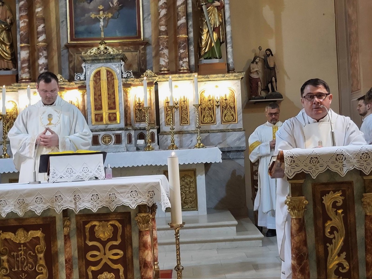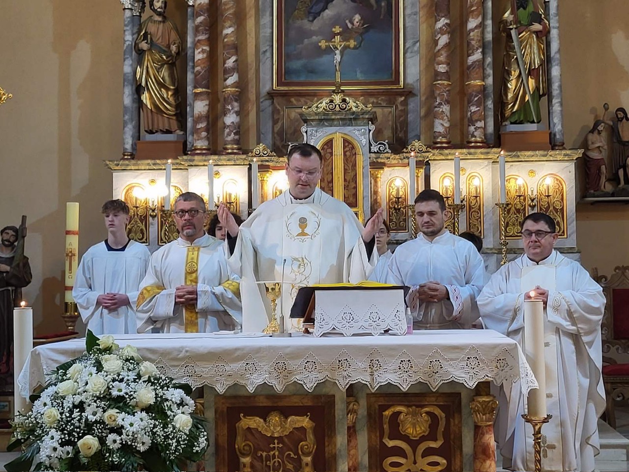 Misu u 18 h predslavio je vlč. Ivan Bingula, profesor glazbe na Katoličkom bogoslovnom fakultetu i duhovni pomoćnik u župi Sv. Barbare Vrapče – Zagreb, u zajedništvu sa župnikom Tomislavom Petrićem. Na misi je đakonirao trajni đakon Miljenko Flajs, a posluživao kandidat za trajni đakonat Ivan Golubić. Velečasni Ivan nas je u svojoj nadahnutoj propovijedi potaknuo da kao vjernici u životu ne težimo za instant rješenjima, već da kao sveti likovi iz evanđelja, starac Šimun i proročica Ana, budemo postojani u molitvi i strpljivi u nošenju životnih križeva jer jedino tako će Gospodin i nama pružiti milost da možemo zajedno sa starcem Šimunom na koncu svoga života uzviknuti: „ Sad otpuštaš slugu svojega, Gospodaru, po riječi svojoj, u miru! Ta vidješe oči moje spasenje tvoje, koje si pripravio pred licem sviju naroda: svjetlost na prosvjetljenje naroda, slavu puka svoga izraelskoga.“