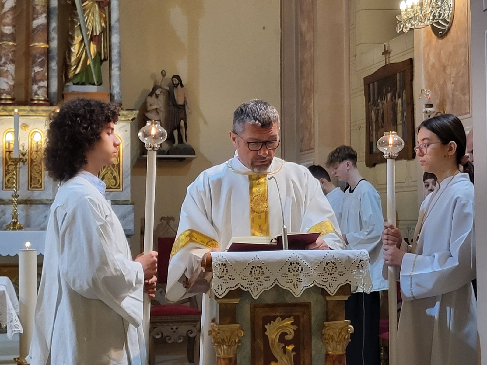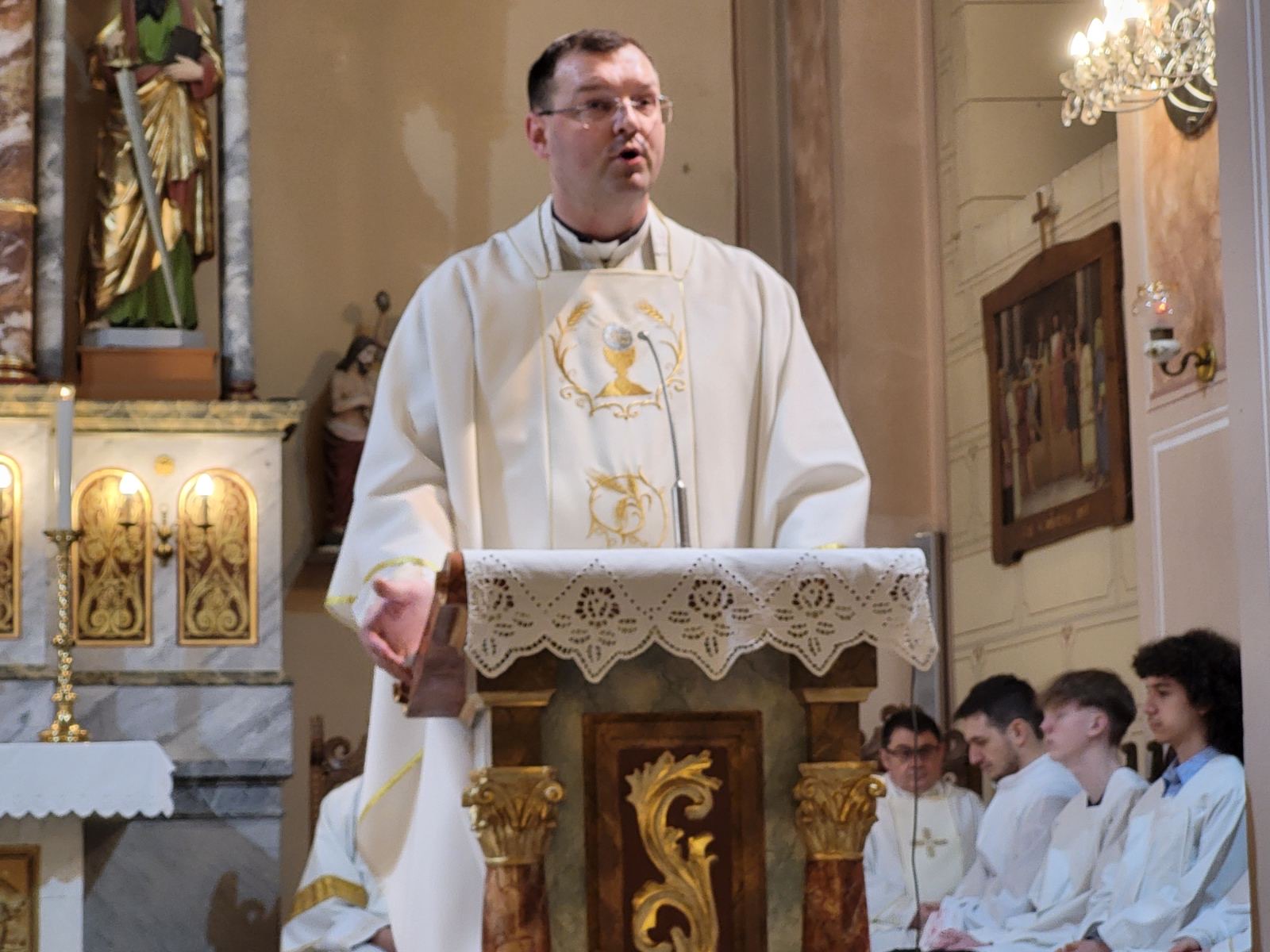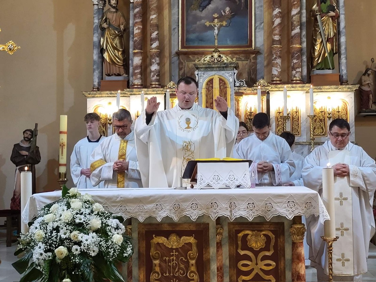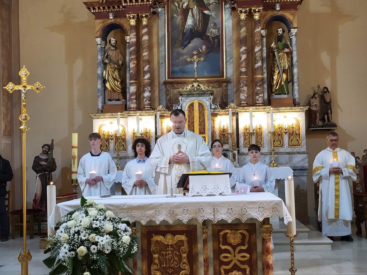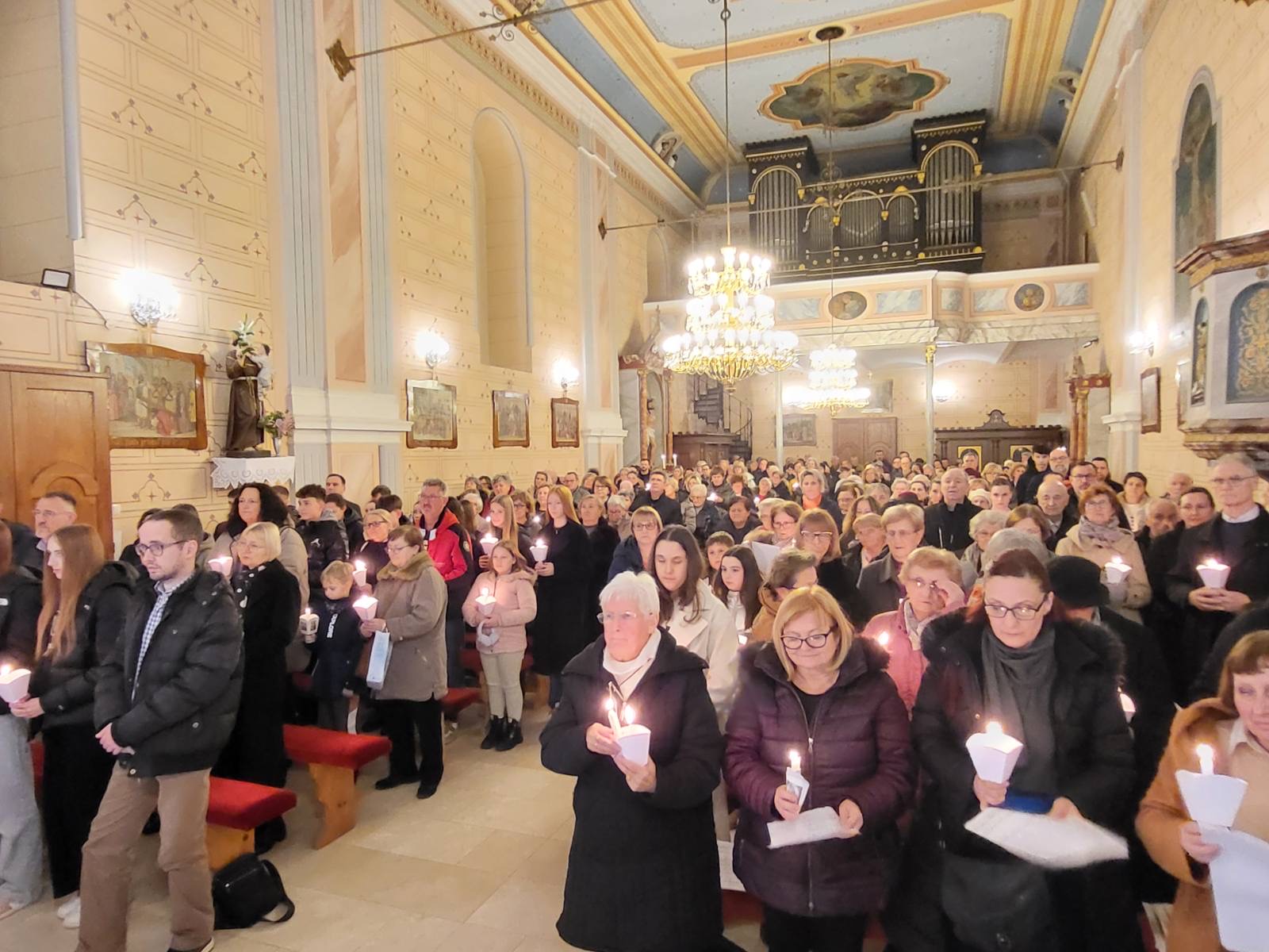 Misu u 18 h predslavio je vlč. Ivan Bingula, profesor glazbe na Katoličkom bogoslovnom fakultetu i duhovni pomoćnik u župi Sv. Barbare Vrapče – Zagreb, u zajedništvu sa župnikom Tomislavom Petrićem. Na misi je đakonirao trajni đakon Miljenko Flajs, a posluživao kandidat za trajni đakonat Ivan Golubić. Velečasni Ivan nas je u svojoj nadahnutoj propovijedi potaknuo da kao vjernici u životu ne težimo za instant rješenjima, već da kao sveti likovi iz evanđelja, starac Šimun i proročica Ana, budemo postojani u molitvi i strpljivi u nošenju životnih križeva jer jedino tako će Gospodin i nama pružiti milost da možemo zajedno sa starcem Šimunom na koncu svoga života uzviknuti: „ Sad otpuštaš slugu svojega, Gospodaru, po riječi svojoj, u miru! Ta vidješe oči moje spasenje tvoje, koje si pripravio pred licem sviju naroda: svjetlost na prosvjetljenje naroda, slavu puka svoga izraelskoga.“