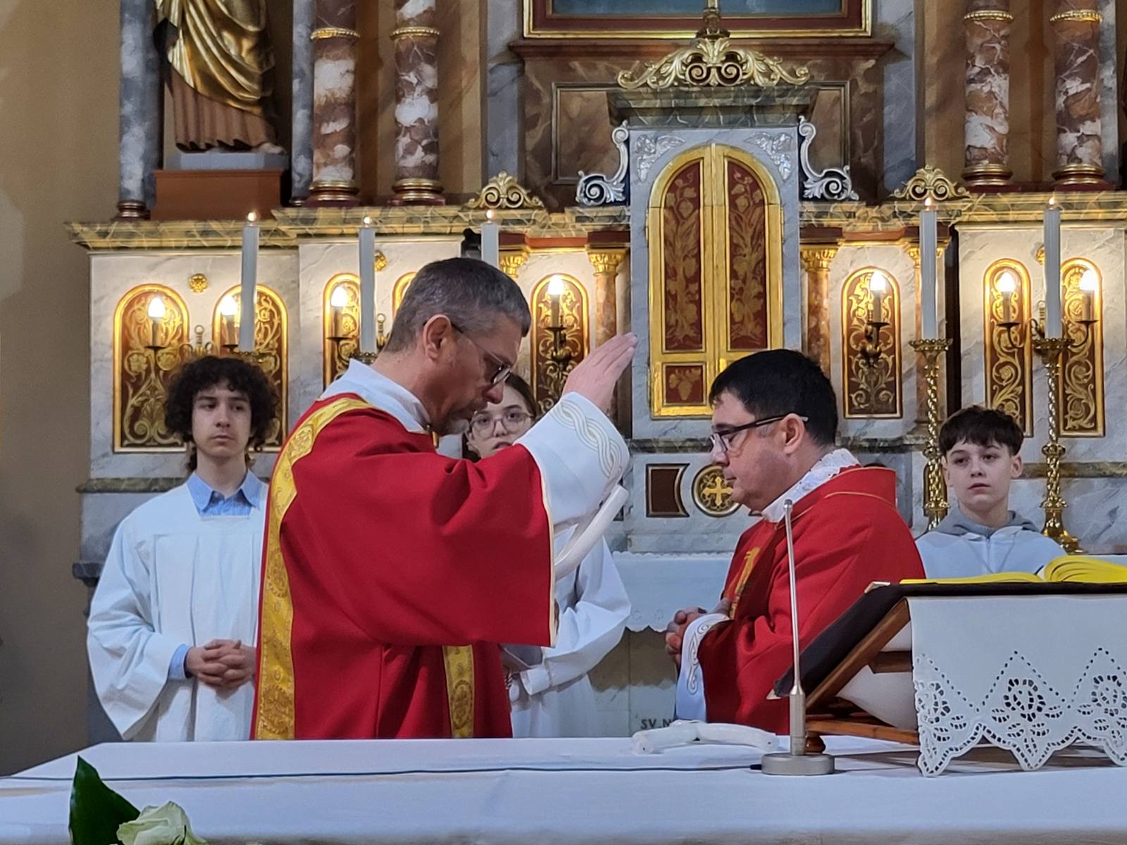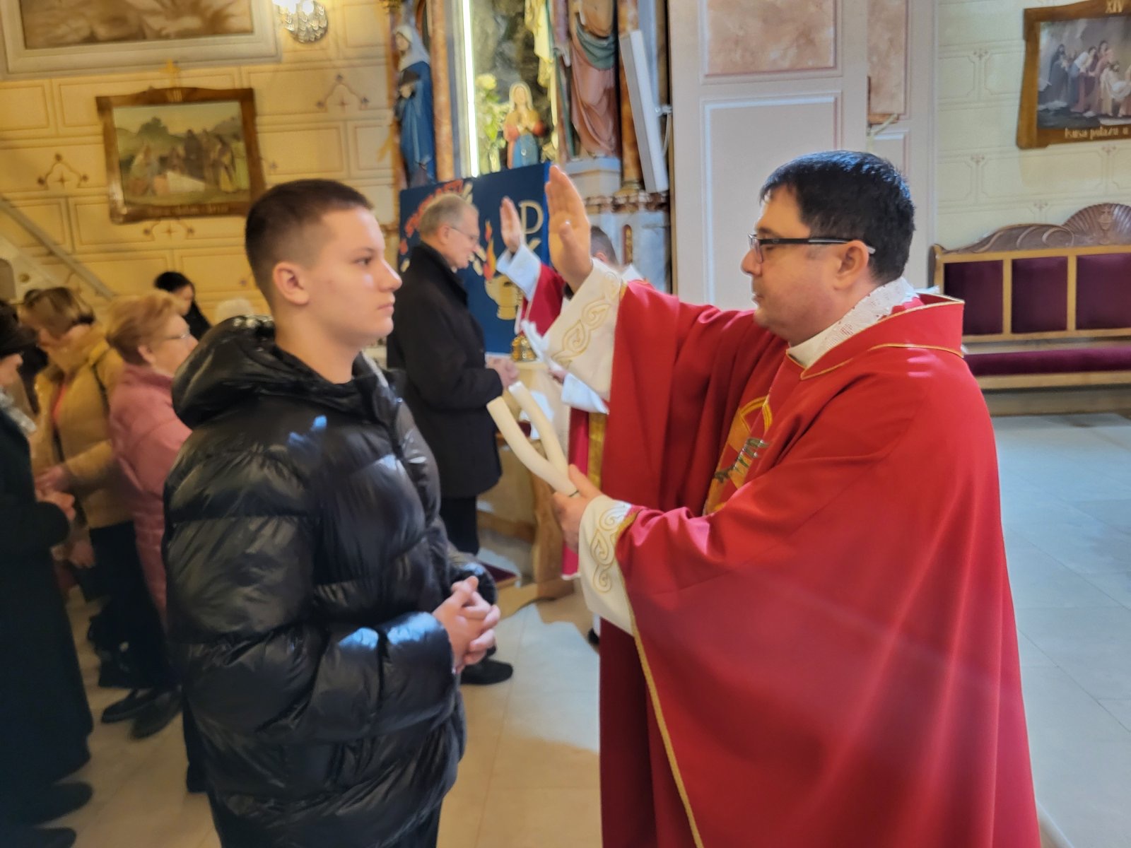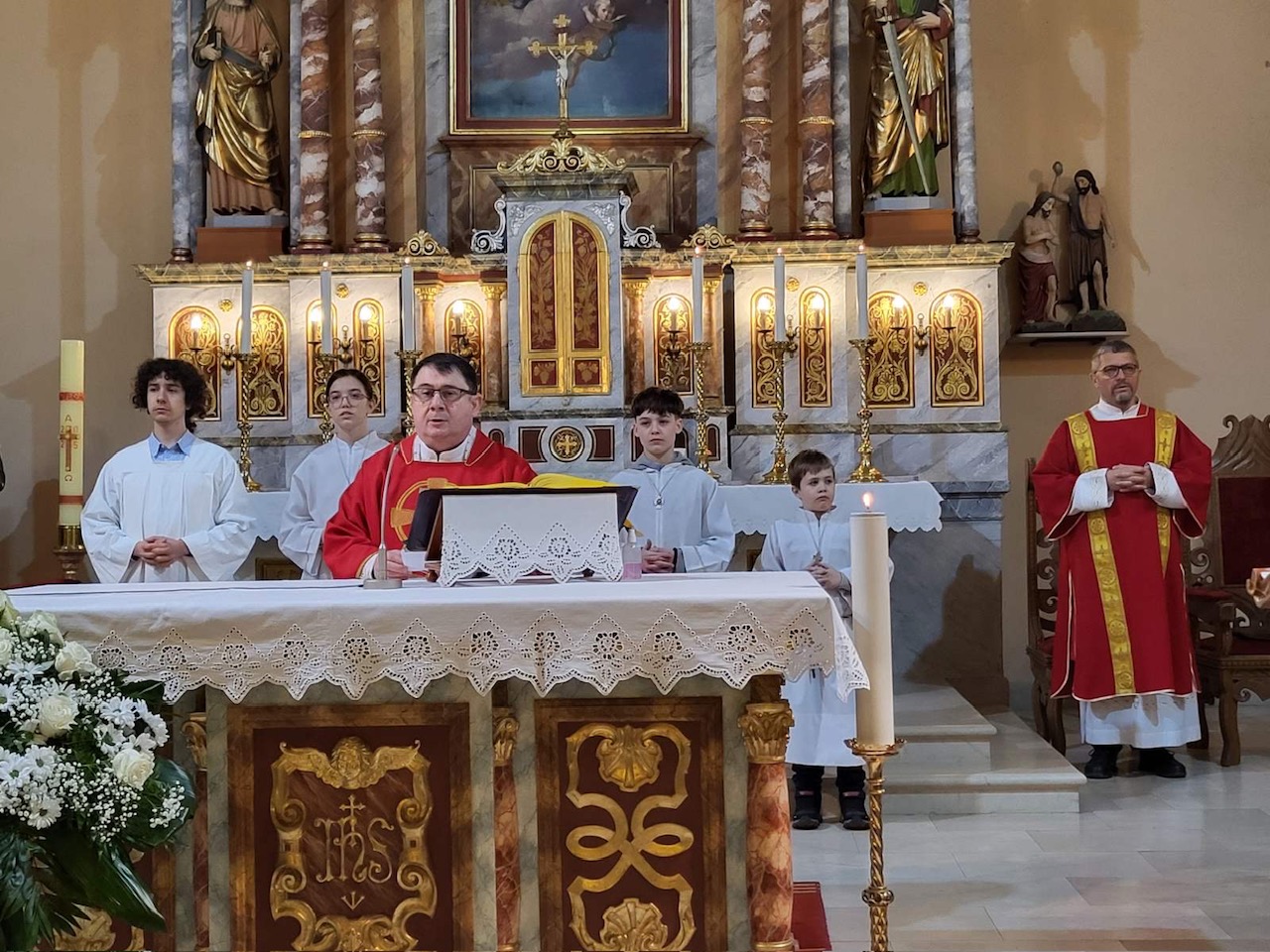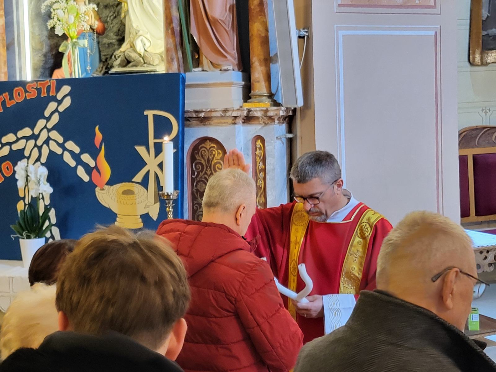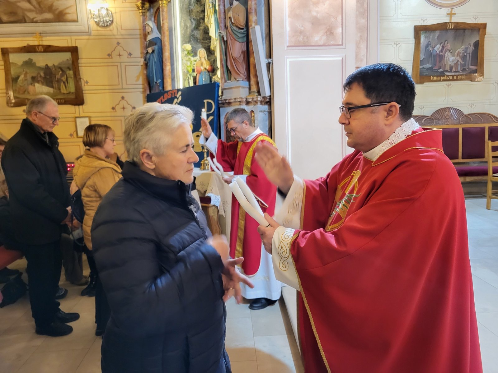 U utorak 3. veljače, misom u 18 h, svečano smo proslavili blagdan sv. Blaža, biskupa i mučenika. Mučenici su oduvijek bili primjeri ljubavi prema Bogu koji su privlačili i davali snagu kršćanskog svjedočenja, osobito u vrijeme progona kršćana. Da mučeništvo još uvijek daje snagu i privlačnost i nama današnjim vjernicima pokazuju nam i brojni vjernici koji su se okupili diljem svijeta, pa tako i u našoj domovini, slaveći mučenika biskupa Blaža pod čiji zagovor su se utjecali. Tako se i u našoj župi, na misi koju je predvodio župnik Tomislav, a propovijedao trajni đakon Miljenko, okupio se velik broj vjernika koji su došli moliti pomoć i zaštitu od Gospodina po svečevom zagovoru. Đakon Miljenko nam je u svojoj nadahnutoj propovijedi približio značenje slavlja mučenika Blaža te nas pozvao da blagoslov grla koji je uslijedio nakon misnog blagoslova ne shvaćamo kao neki magični čin, već da molimo zagovor sveca da nas očuva da iz našeg grla izlaze samo dobre i plemenite riječi kojima nećemo druge ranjavati, već druge blagoslivljati i za njih moliti. Misu je pjesmom animirao naš veliki zbor potpomognut članovima zbora mladih i dječjeg zbora.