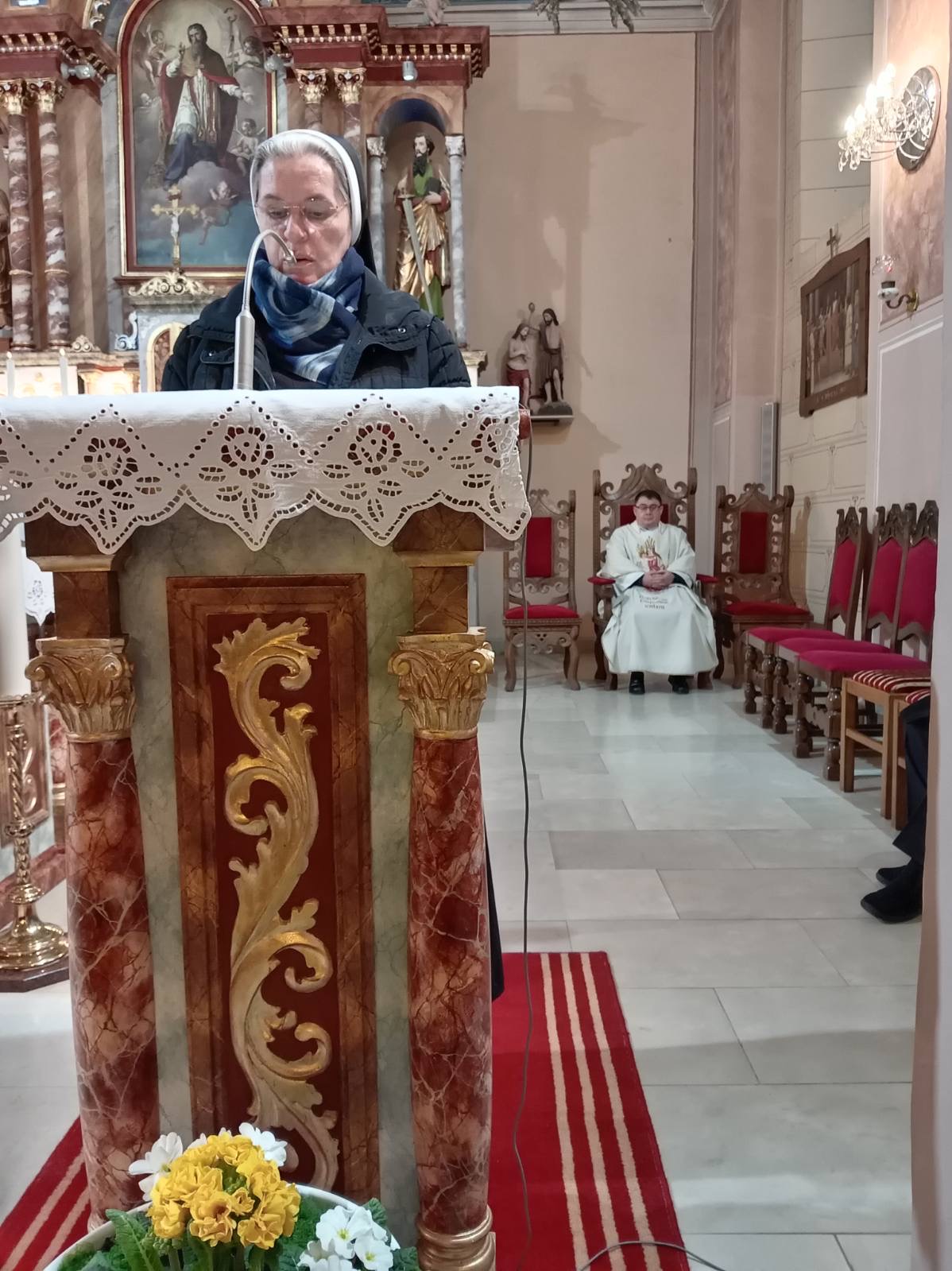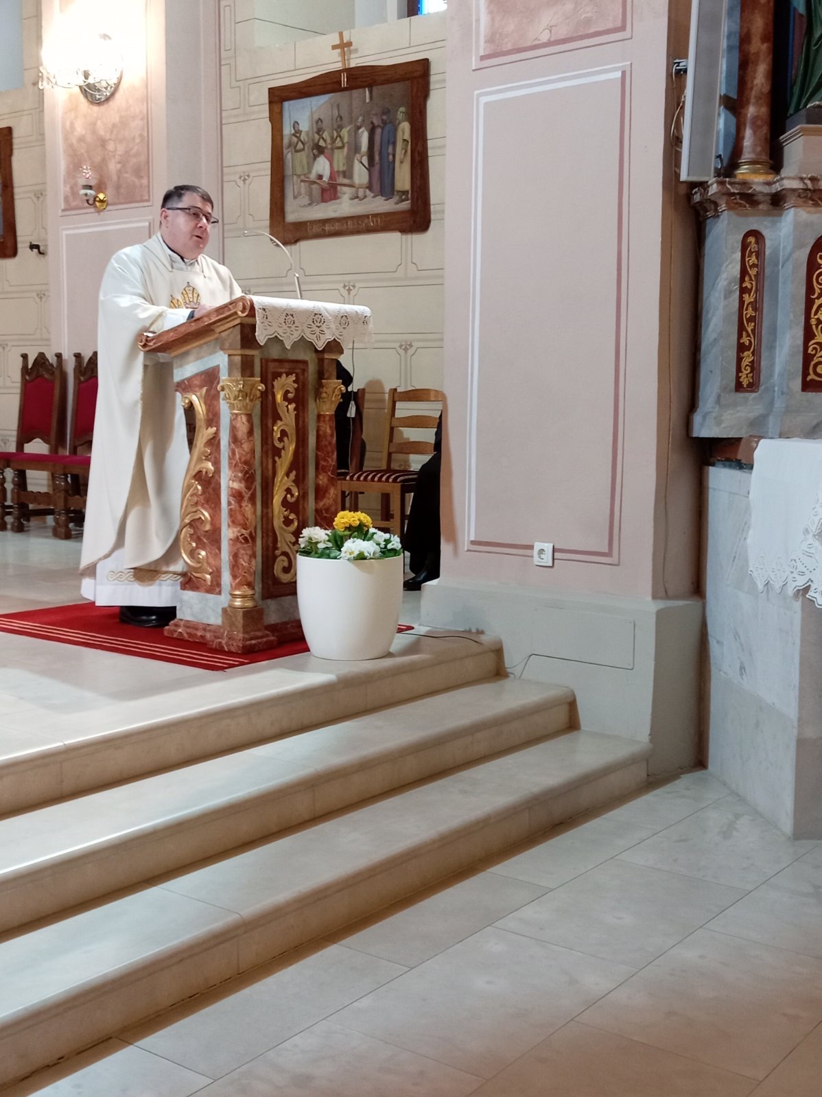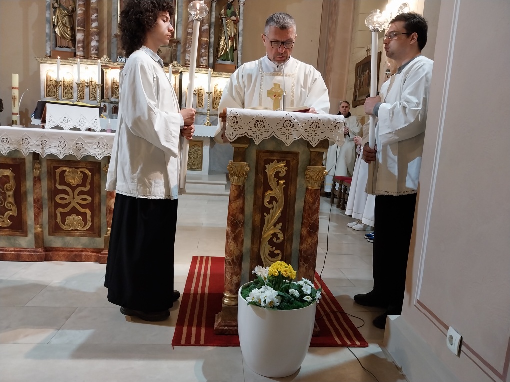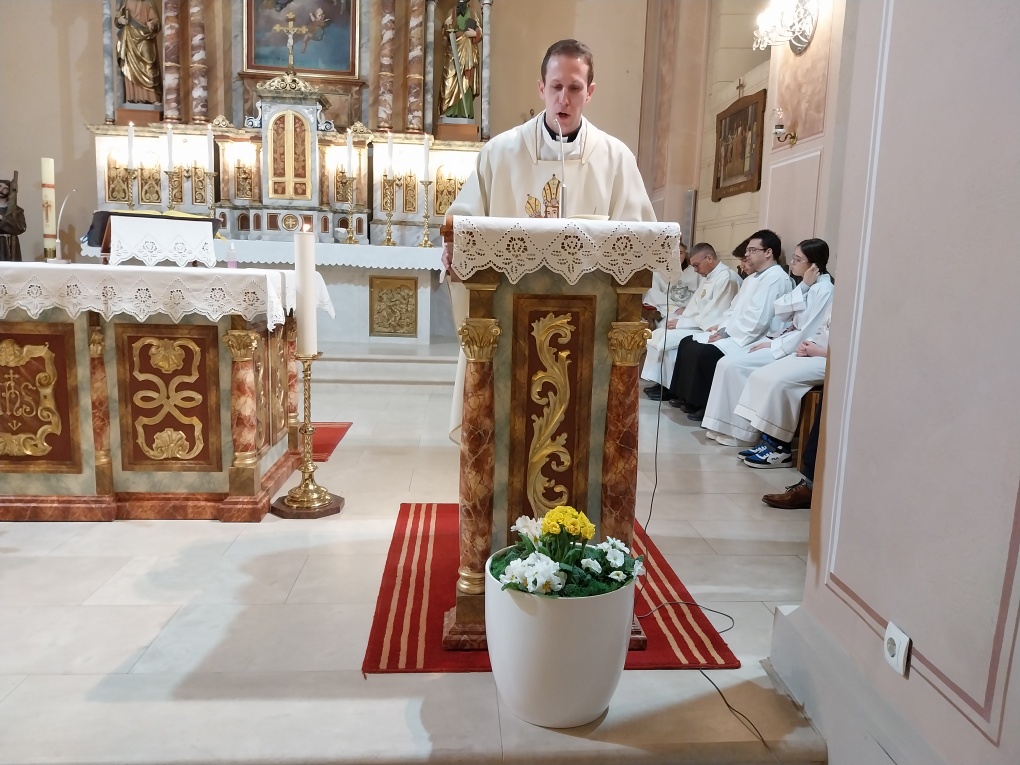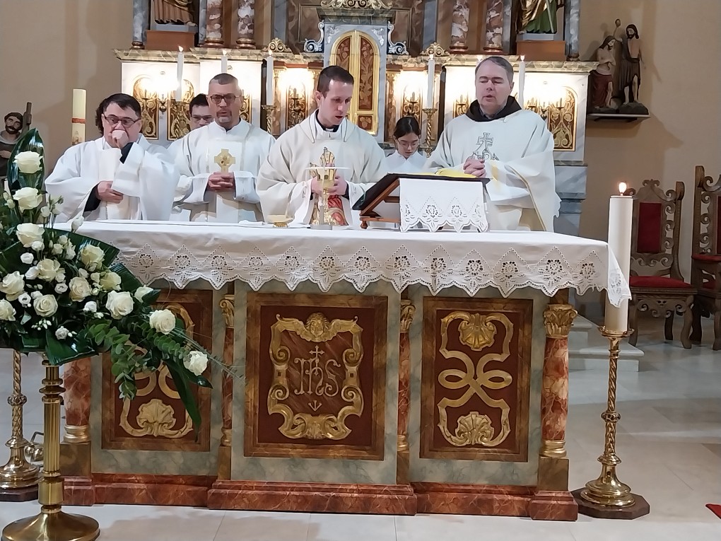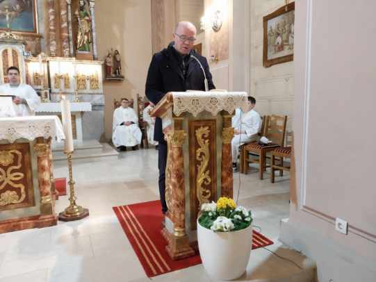Večernju misu u 18 h predvodio je vlč. Dario Levanić, župnik u Reki. Koncelebrirali su pater Zoran Bibić, kapelan u sv. Antunu i domaći župnik Tomislav Petrić, a đakonirao trajni đakon Miljenko Flajs. Velečasni Dario nas je u svojoj nadahnutoj propovijedi potaknuo na temelju evanđelja i prvog Isusovog čuda na svadbi u Kani Galilejskoj da se i mi trudimo sačuvati ono „dobro vino“ u našim životima. To dobro vino koje je Isus načinio pretvorivši vodu u vino, zapravo su naša svakodnevna djela ljubavi koja trebamo živjeti u našoj svakodnevnici u odnosima jednih prema drugima. Svjesni smo da nam često ponestane „vina“ u našim svakodnevnim odnosima i da nam je potreban istinski odnos s Isusom, ali i Marijin zagovor kako bismo obnovili to „vino ljubavi“ o kojem nam progovara današnje evanđelje. Velečasni Dario nas je također pozvao na molitvu po zagovoru Gospe Lurdske, za bolesne i nemoćne, ali i za medicinsko osoblje koje se nesebično daruje za bolesne i nemoćne poslužujući im, liječeći i ublažujući njihove boli.