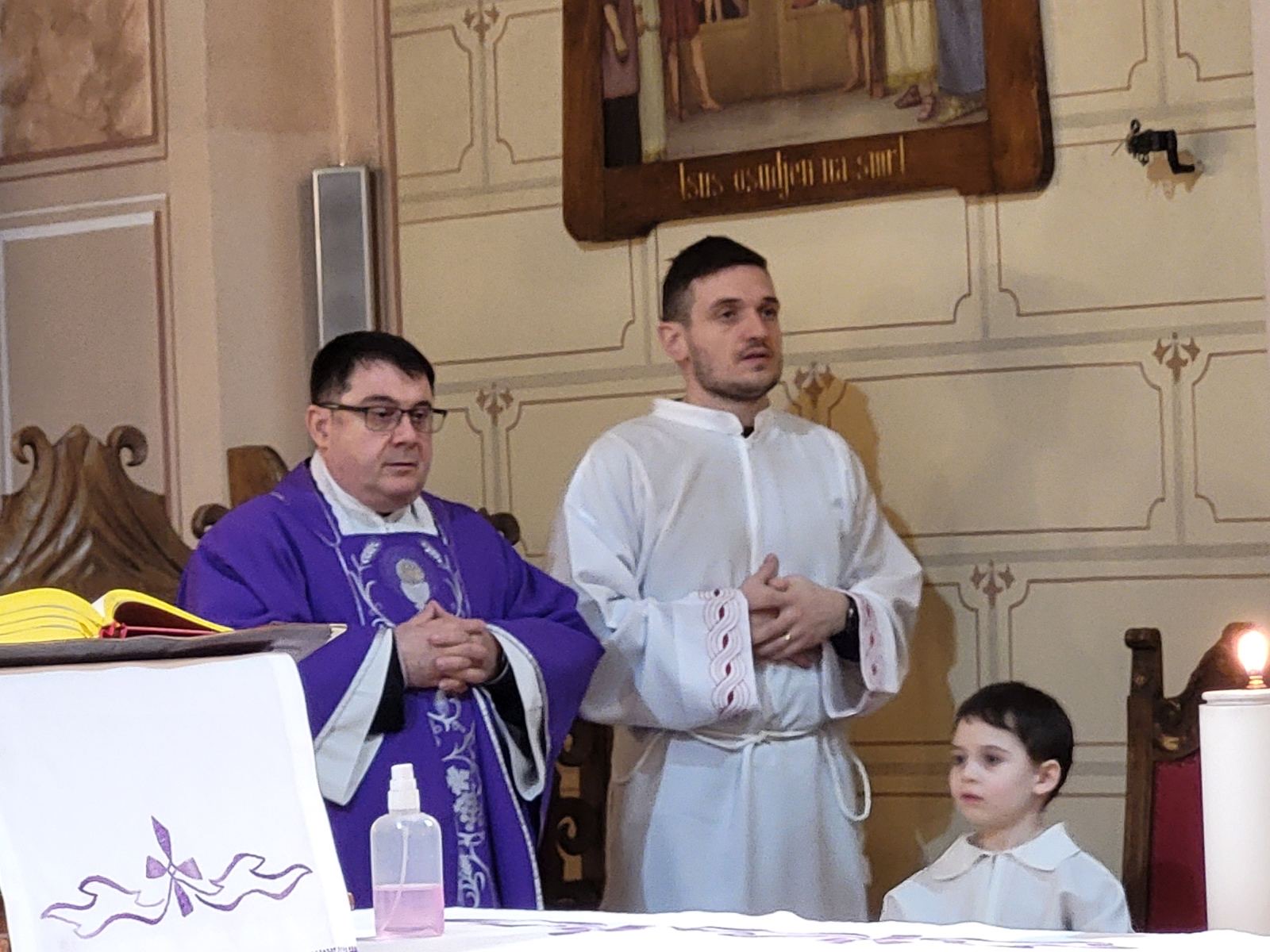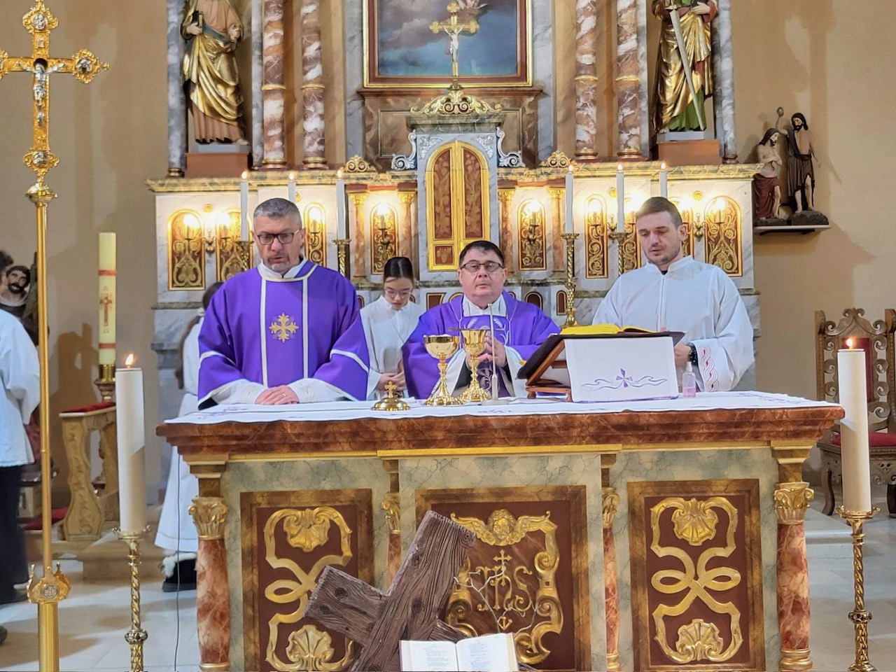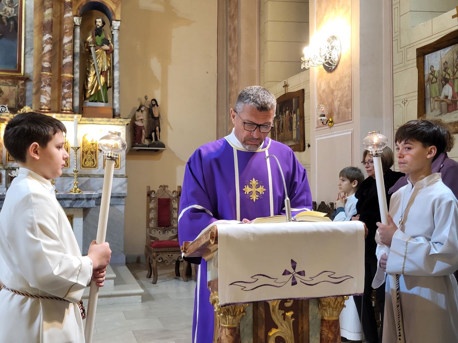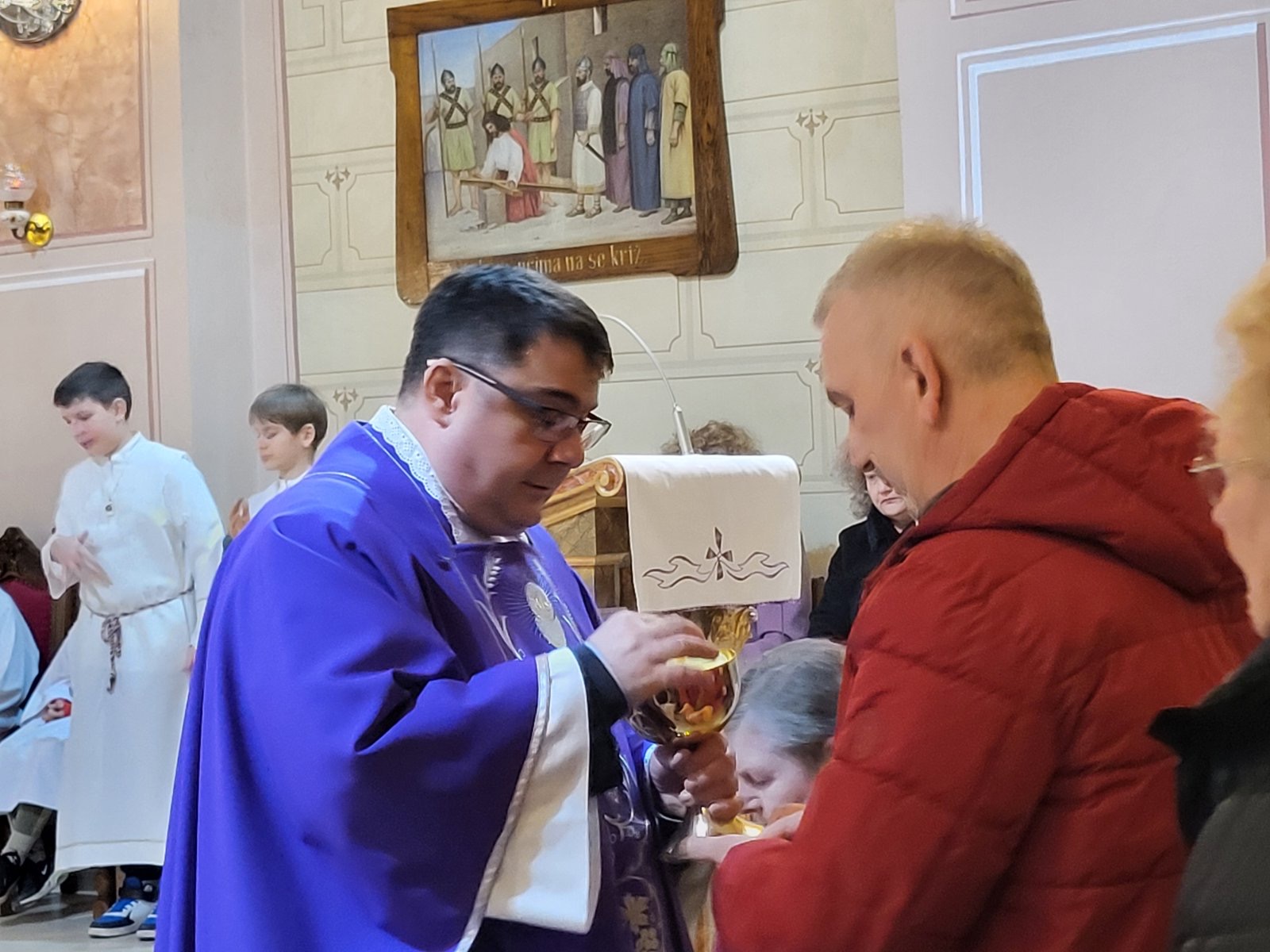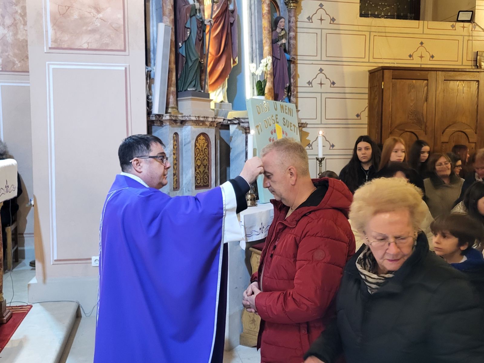 Večernju misu u 18 sati predvodio je župnik Tomislav Petrić, a propovijedao trajni đakon Miljenko Flajs, koji nas je u nadahnutoj propovijedi pozvao na istinsko promišljanje o trima bitnim zadaćama o kojima nam je progovorilo i samo evanđelje, postu, milostinji i molitvi, te nas pozvao da se i mi u ovom svetom vremenu koje je pred nama trudimo činiti djela ljubavi spram onih koje nam Gospodin stavlja na naše životne putove.