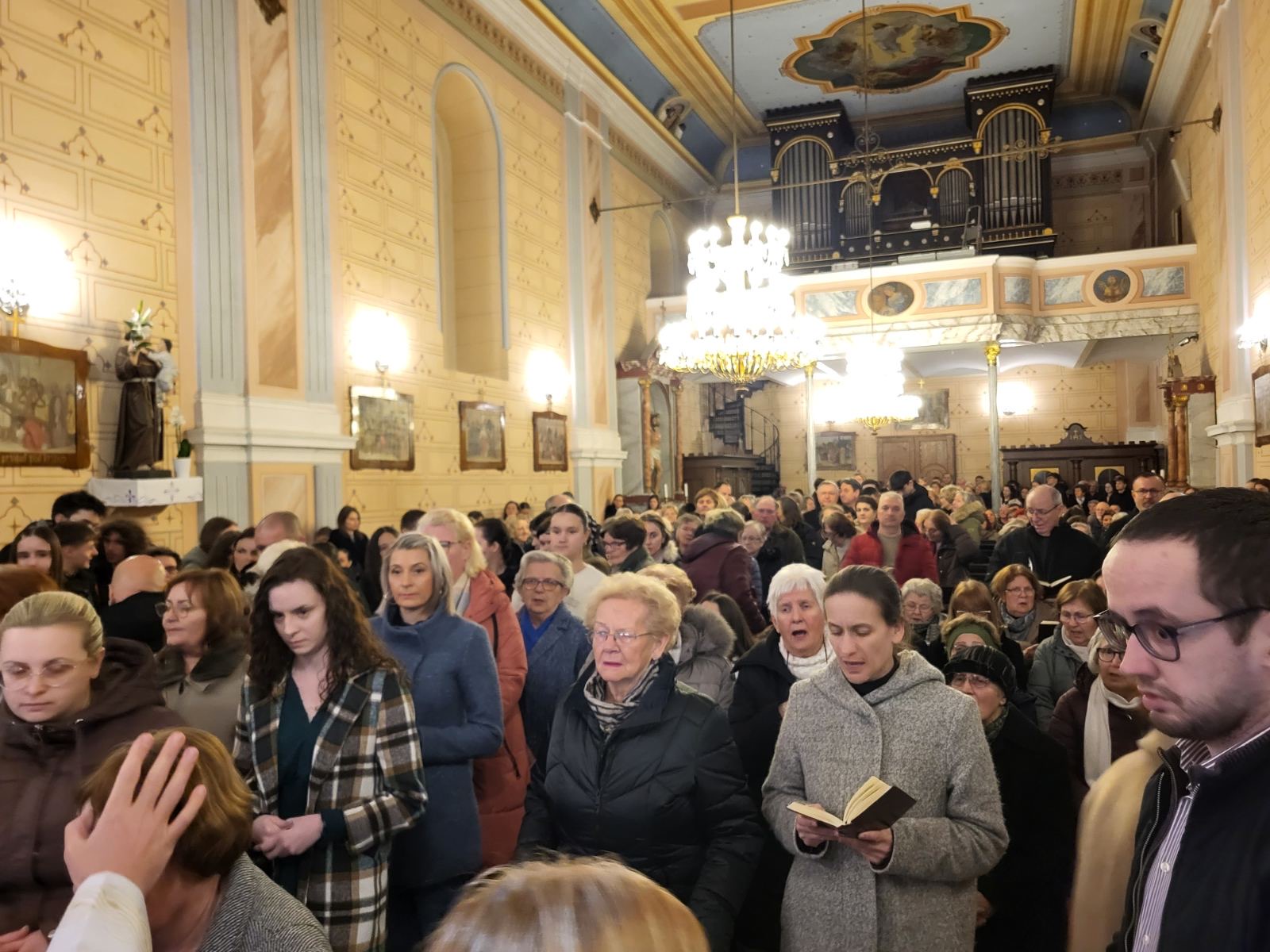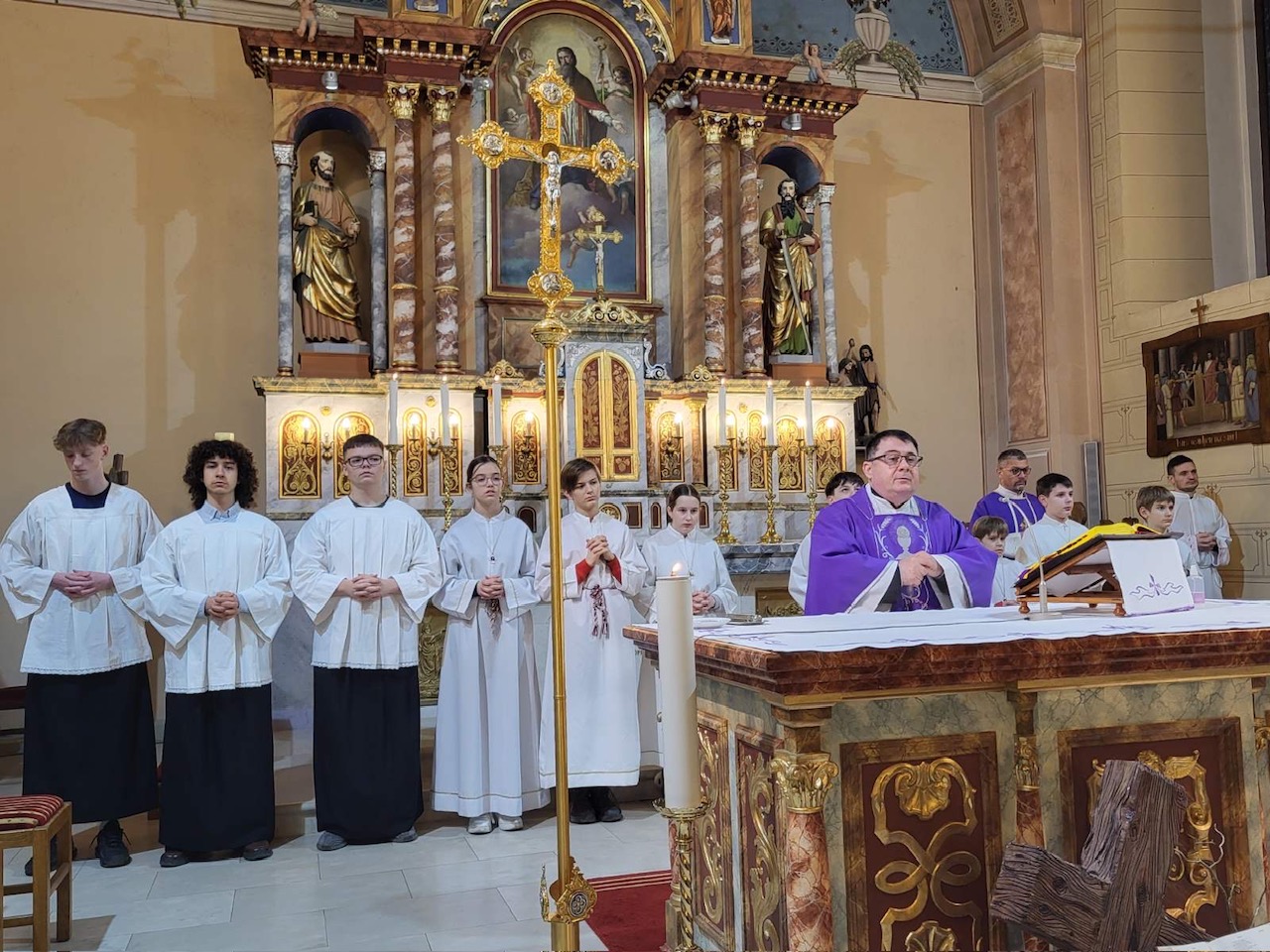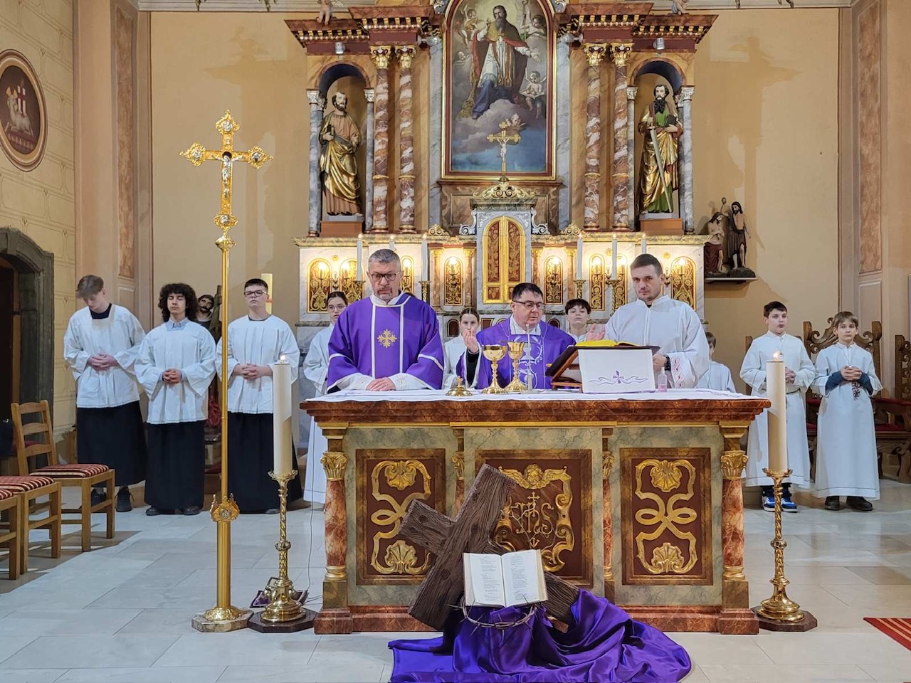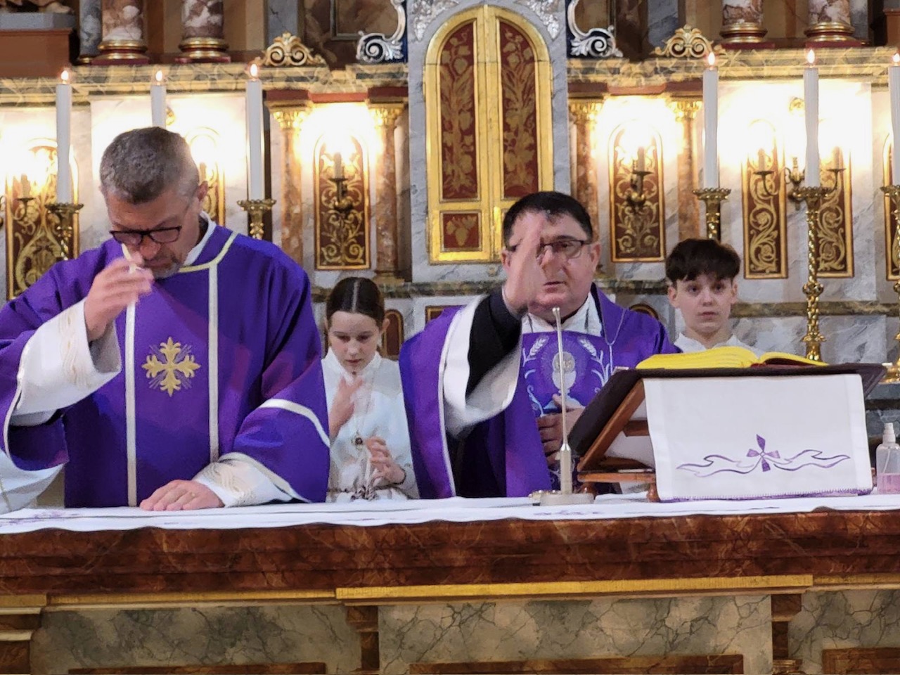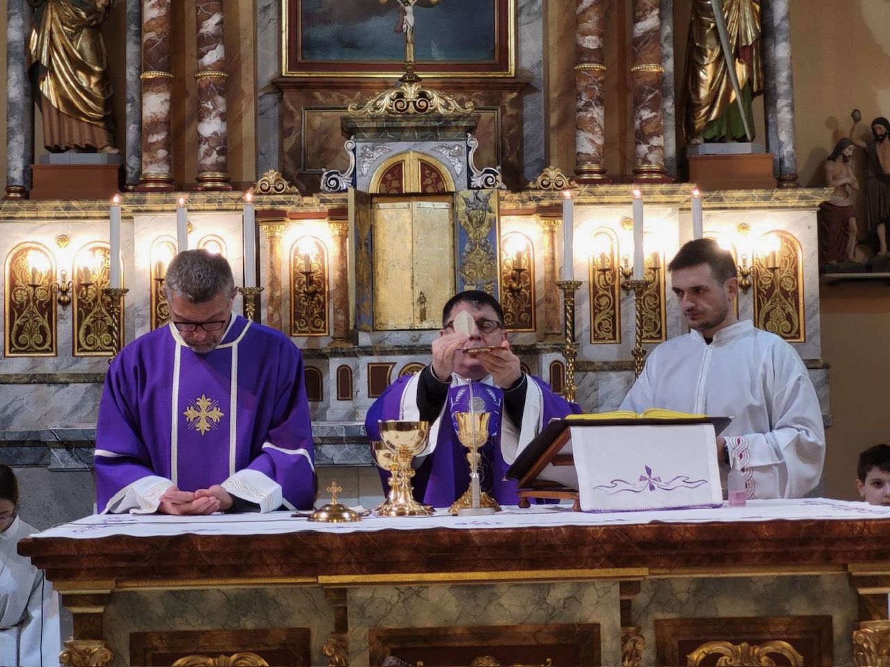 Večernju misu u 18 sati predvodio je župnik Tomislav Petrić, a propovijedao trajni đakon Miljenko Flajs, koji nas je u nadahnutoj propovijedi pozvao na istinsko promišljanje o trima bitnim zadaćama o kojima nam je progovorilo i samo evanđelje, postu, milostinji i molitvi, te nas pozvao da se i mi u ovom svetom vremenu koje je pred nama trudimo činiti djela ljubavi spram onih koje nam Gospodin stavlja na naše životne putove.