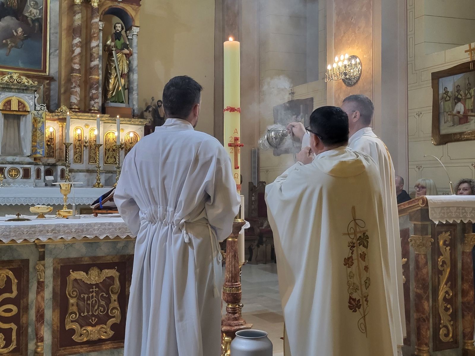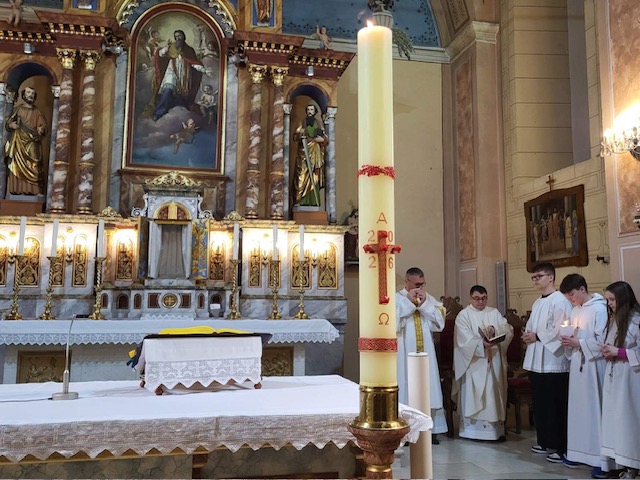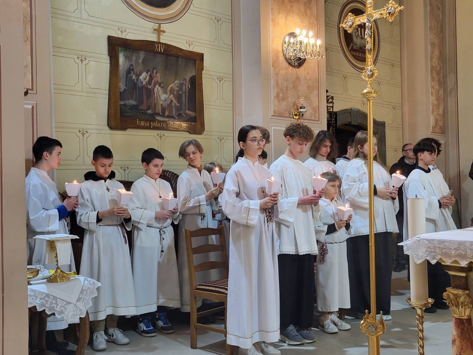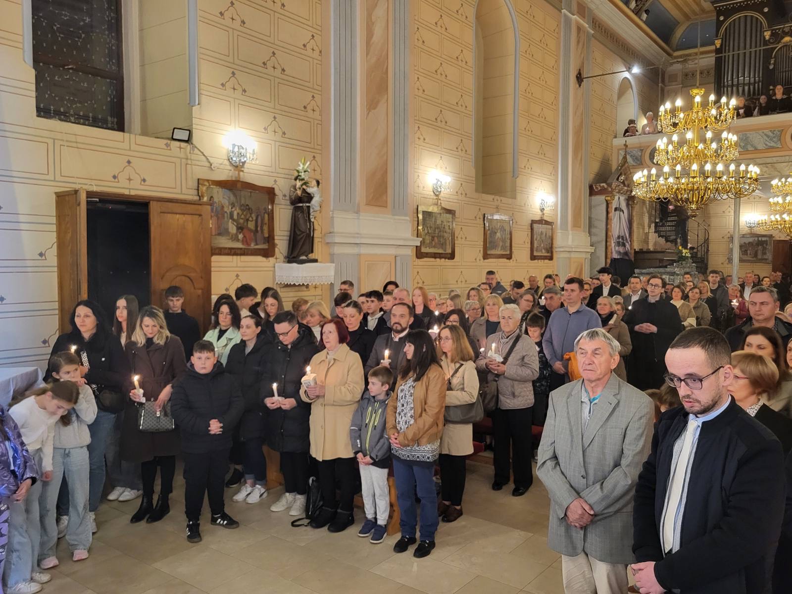 Ujutro od 8:30 h bilo je izloženo Presveto iznad Isusova groba na poklonstvo. Kroz čitav dan vjerni puk pohodio je Isusov grob i zahvaljivao Gospodinu na njegovoj žrtvi za nas i naše otkupljenje. Zajedničkim klanjanjem u 19:30 h koje je predvodio đakon Miljenko, završili smo pohod grobu i započeli Vazmeno bdijenje blagoslovom ognja ispred crkve u 20 h. Obrede Velike subote predvodio je župnik Tomislav uz asistenciju đakona Miljenka te uz prisustvo vjernog puka koji je došao proslaviti Isusovo uskrsnuće. Hvalospjev uskrsnoj svijeći pjevao je Ivan Golubić, kandidat za trajni đakonat. Misna čitanja čitali su naši vrijedni liturgijski čitaći, a pjevanje animirali, u zajedništvu, članovi svih naših zborova.