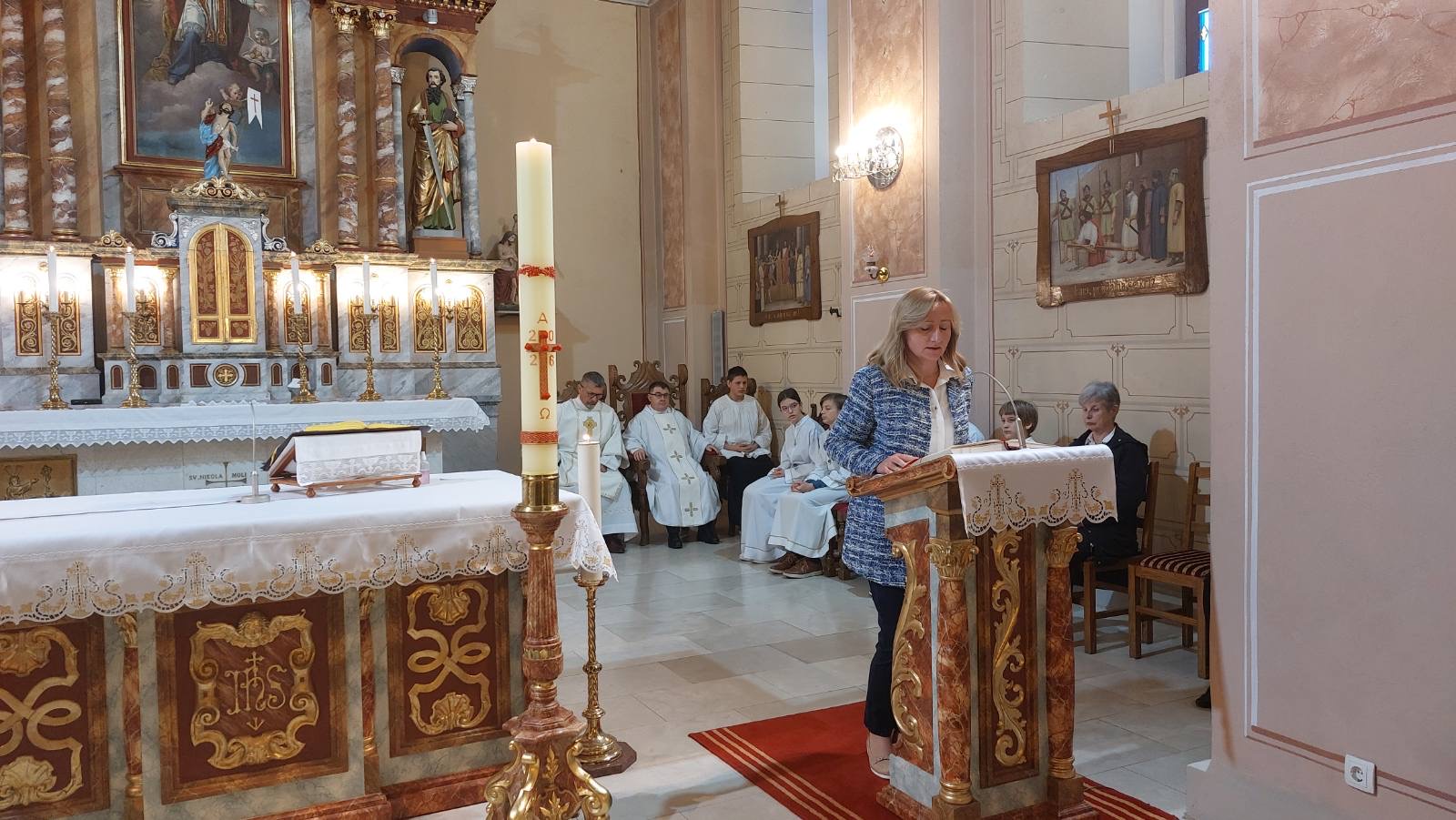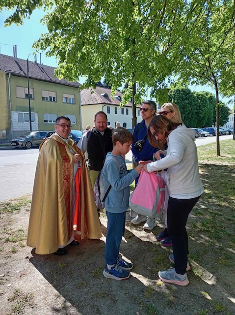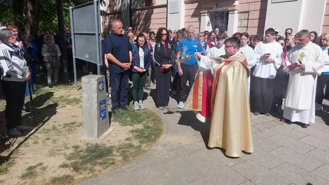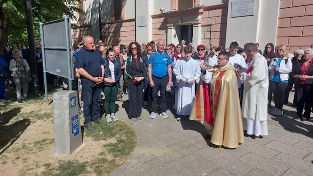 Nakon misnog slavlja uslijedio je, ispred župne crkve, blagoslov Camino stupića i oglasne ploče s rutom Camino Podravine. Župnik je blagoslovio kameni stupić i nazočne hodočasnike molitvom: